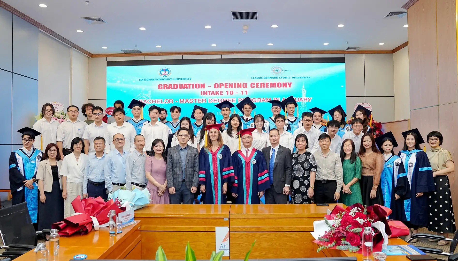 Sáng ngày 18/4/2026, Đại học Kinh tế Quốc dân phối hợp với Đại học Lyon 1 (Cộng hòa Pháp) tổ chức Lễ tốt nghiệp Khóa 10, khai giảng Khóa 11 và giới th...