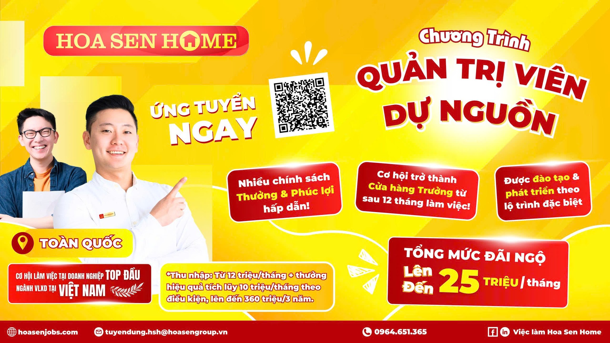 Ứng tuyển ngay chương trình "Quản Trị Viên Dự Nguồn Hoa Sen Home" để khẳng định năng lực - phát triển bản thân - trở thành Cán bộ Quản lý tại Hoa Sen Home và Tập đoàn Hoa Sen!
