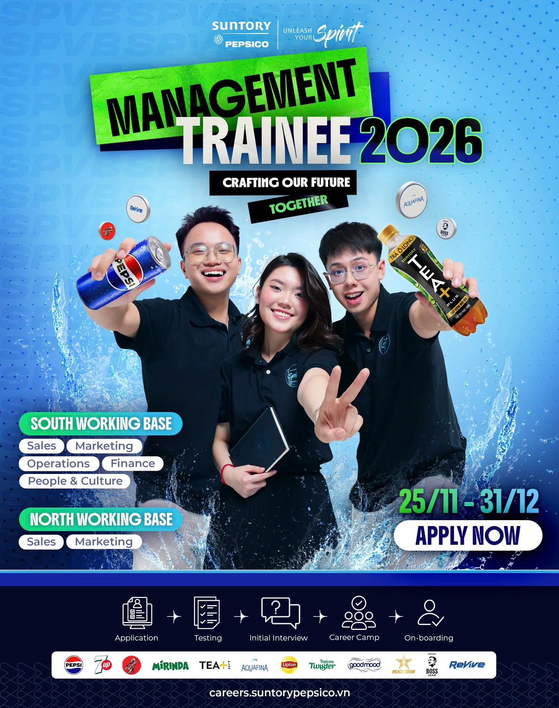 CHƯƠNG TRÌNH SUNTORY PEPSICO MANAGEMENT TRAINEE 2026 ĐÃ CHÍNH THỨC MỞ ĐƠN ĐĂNG KÝ