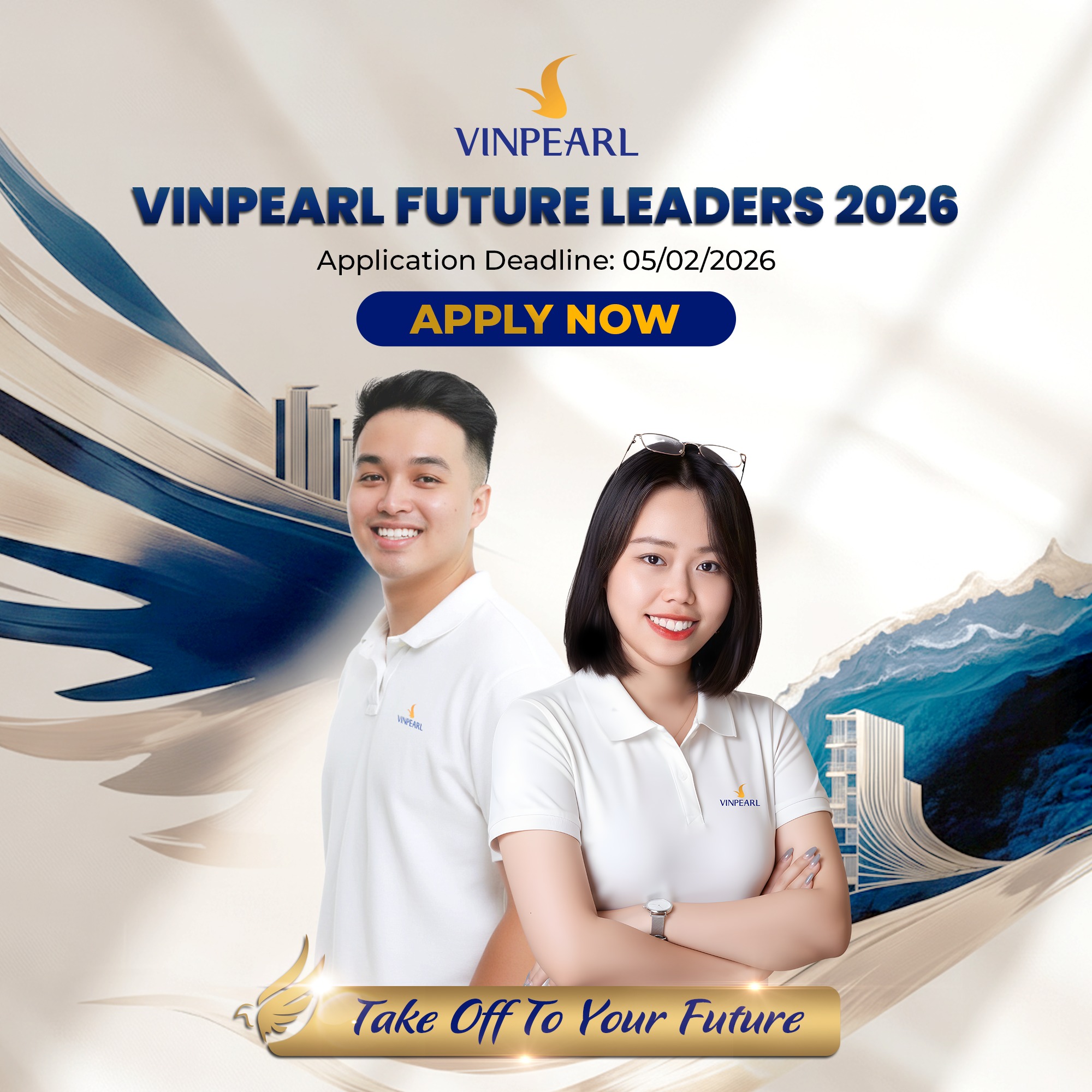Ứng tuyển ngay trước 05/02/2026 để trở thành một phần của Vinpearl Future Leaders 2026 – nơi hành trình lãnh đạo của bạn chính thức bắt đầu.