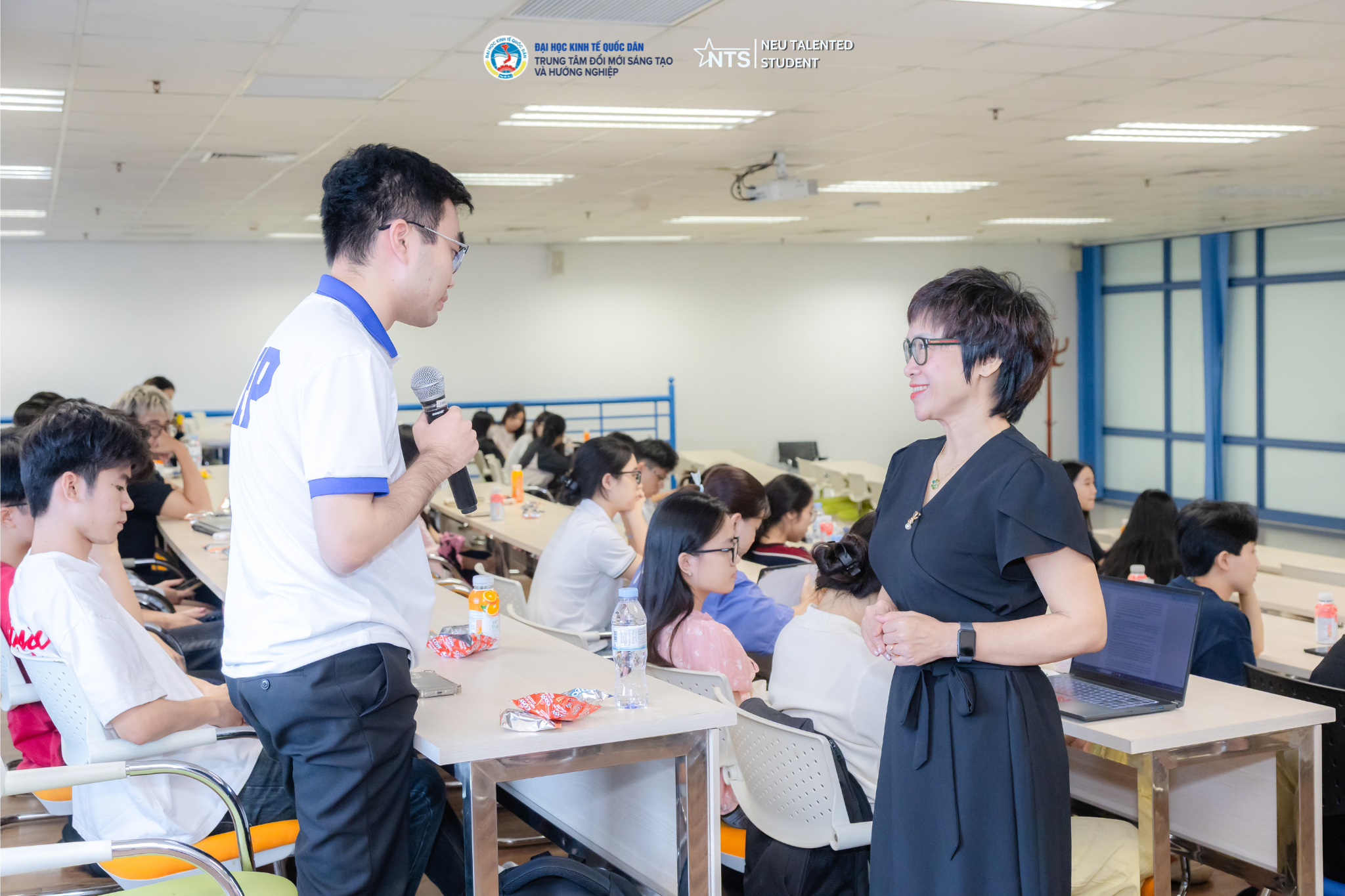 Các bạn sinh viên đặt câu hỏi và giao lưu với Bà Nguyễn Thị Thủy
