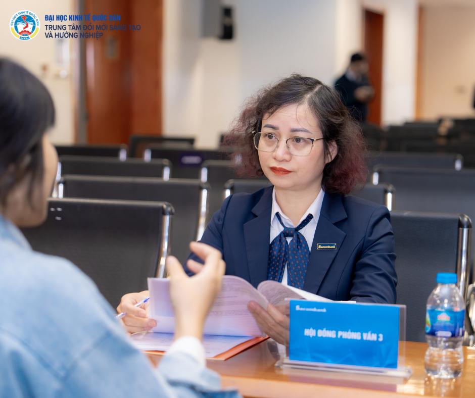 Ngay sau đó, Sacombank đã tiến hành phỏng vấn trực tiếp đối với các ứng viên có nguyện vọng tham gia chương trình. Đây không chỉ là vòng đánh giá năng lực chuyên môn và khả năng tư duy tình huống, mà còn là cơ hội để sinh viên thể hiện phong thái, thái độ nghề nghiệp và mức độ phù hợp với văn hóa tổ chức. Thông qua buổi phỏng vấn, các bạn sinh viên được tiếp cận quy trình tuyển dụng thực tế của một ngân hàng lớn, làm quen với cách thức ứng xử trong môi trường chuyên nghiệp, đồng thời lắng nghe những góp ý thiết thực từ đội ngũ tuyển dụng.