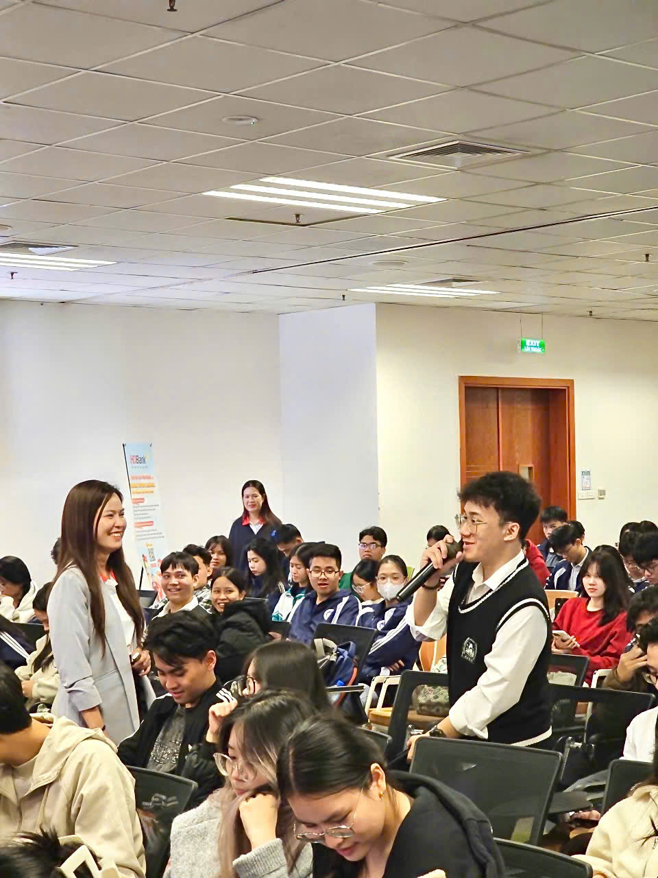 Chương trình cũng dành thời gian để HDBank giới thiệu các cơ hội nghề nghiệp hấp dẫn như chương trình thực tập sinh tiềm năng, tuyển dụng nhân sự trẻ, cùng các chính sách đào tạo và phát triển dành cho sinh viên mới ra trường. Nhiều bạn sinh viên bày tỏ sự hào hứng khi được tiếp cận thông tin thực tế và mong muốn được trở thành một phần của HDBank trong tương lai.