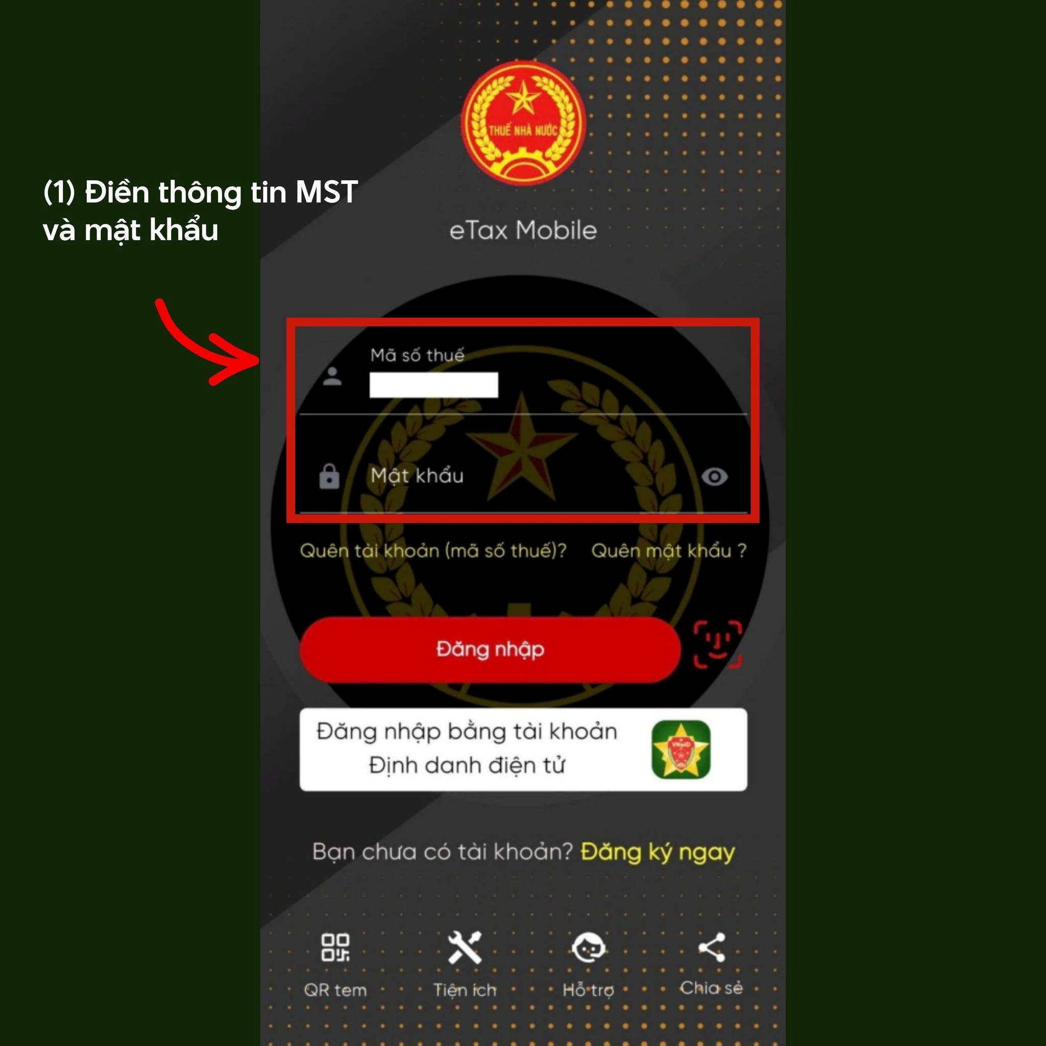 Tải ứng dụng eTax Mobile trên App Store hoặc Google Play, sau đó thực hiện đăng ký tài khoản theo hướng dẫn trong ứng dụng.